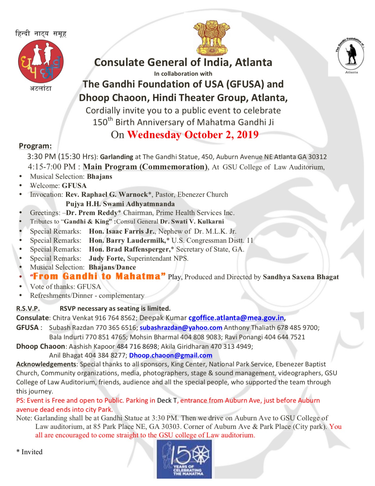 Gandhi Jayanti Celebrations ( Oct 2, 2019)