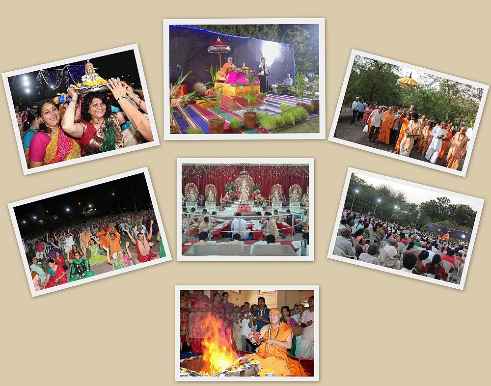 Before Srimad Bhagawat Katha commenced devotees joined in for "Pothi Yatra" carried Sri Bal Krishna in procession with traditional orchestra and dancing and singing in praise Sri Lallaji Maharaj. Thirty one young students of Bhagavata learning rendered their services by reading Bhagavata very systematically every day. From the Vyasa Peeth, Sri Swami Adhyatmanandaji Maharaj graced the devotees, the nectar of Srimad Bhagawata for seven days daily from 5:30 pm to 9:00 pm.