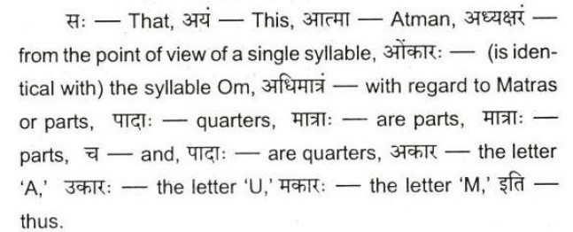 This is that Atman even with regard to the letters (of the word OM); it is the Omkara with its parts. The quarters are the parts, and the parts the quarters. The parts of Om are "A," "U" and "M".