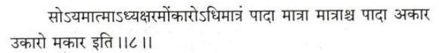 In the previous Mantras the Atman has been described from the viewpoint of the states of waking, dream, sleep and Turiya. The same Atman is described from the viewpoint of the sound OM in the following Mantras. This will help meditation on Om. Om is analyzed into its constituent sound elements 'A,' 'U' and 'M' in order to identify them with the states of waking, dream and sleep. Those which constitute the quarters of the Atman are the letters of AUM, "A", "U" and "M".