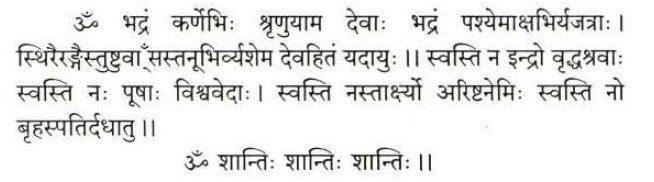 Om, O gods, may we, with our ears, hear what is auspicious;