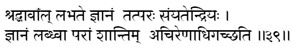 austerity are the purifiers of the wise.(18:5) The man who is full of faith, who is devoted to it, and who has subdued all the senses, obtains (this) knowledge; and, having obtained the knowledge, he goes at once to the supreme peace.(4:39)