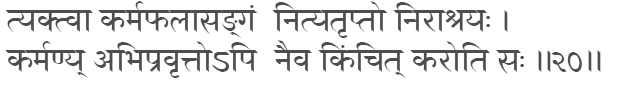 & Activity report for the Month of February 2014 Gitamrutam ![]() He who performs actions, offering them to Brahman and abandoning attachment, is not tainted by sin as a lotus leaf by water. (5:10) ![]() Having abandoned attachment to the fruit of the action, ever content, depending on nothing, he does not do anything though engaged in activity.(4:20) ![]() For, verily the true nature of action (enjoined by the scriptures) should be known, also (that) of forbidden (or unlawful) action, and of inaction; hard to understand is the nature (path) of action. (4:17) ![]()