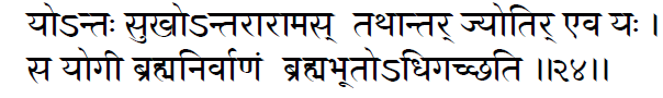 He who is ever happy within, who rejoices within, who is illumined within, such a Yogi attains absolute freedom or Moksha, himself becoming Brahman. (5:24)
