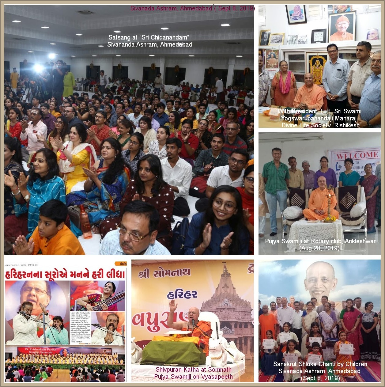 Sivananda Ashram, Ahmedabad August 2018 ==================================== OM Namo Bhagawate Sivanandaya! OM Namo Bhagawate Chidanandaya! OM Namo Narayanaya! ================================================================== "Serve Humanity and Seek Divinity" - by Swami Sivananda "Come,