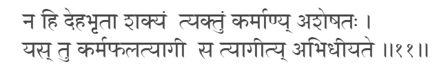 Verily, it is not possible for an embodied being to abandon actions entirely; but he who relinquishes the rewards of actions is verily called a man of renunciation.  (18:11)