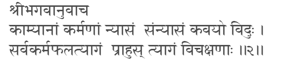 The sages understand Sannyas to be the renunciation of action with desire; the wise declare the abandonment of the fruits of all actions as Tyaga. ( 18:2)