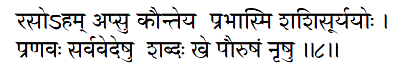 I am the sapidity in water, O Arjuna! I am the light in the moon and the sun; I am the syllable Om in all the Vedas, sound in ether, and virility in men.