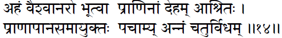 of all beings.( 10:20) Having become the fire Vaisvanara, I abide in the body of living beings and, associated with the Prana and Apana, digest the fourfold food.