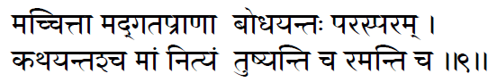 Me.(10:8) With their minds and lives entirely absorbed in Me, enlightening each other and always speaking of Me, they are satisfied and delighted.(10:9)