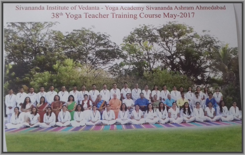 38th Yoga Teacher Training Course (May 10, 2017 - May 30, 2017):  Forty yoga  students from the state of Gujarat, Rajasthan, Madhya Pradesh, Karnataka and Tamilnadu attended three weeks of residential Yoga Teachers Training Course. This year, Orthopedic surgeon Dr. Keyur Buch and Dietician Smt. Kunjal Buch gave honorary services for the first time in this course. The subjects covered were Patanjal Yoga Sutra, Yogasana, Pranayama, Kriyas, Mudras, Bandha, Yoga Nidra, Meditation, relevant anatomy, diet, yoga psychology, yoga Management etc by Rev. Sri Swami Adhyatmanandaji Maharaj and our experienced Yoga faculty members in well structured time slots. 200 hrs of yoga education was credited to the completion of the course. During the entire course, Respected Dr. Varshaben Dave, Dr. Bhavdeep Ganatra, Dr. Ashok Nirvan, Prof. Suresh Patel, Reiki Master Smt. Rupaben Majmudar, Miss Sangeeta Thawani and other volunteers -   Rev. Sheelaben Darbar, Shri Vikram Mistry, Shri Dipen Shah, Smt. Adarsh Kapoor, Smt. Sonal Trivedi gave their honorary services for teaching, arrangements & Yoga demonstration etc.