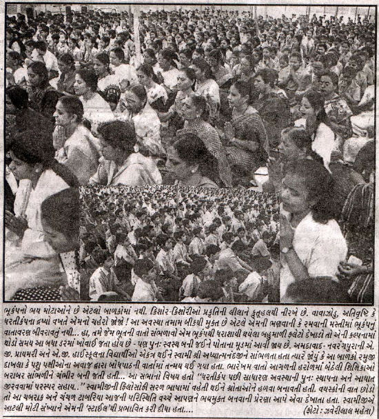 Mass Peace Prayers are being held in Ahmedabad and other parts of Gujarat after the earthquake to alleviate fear and giving the strength.