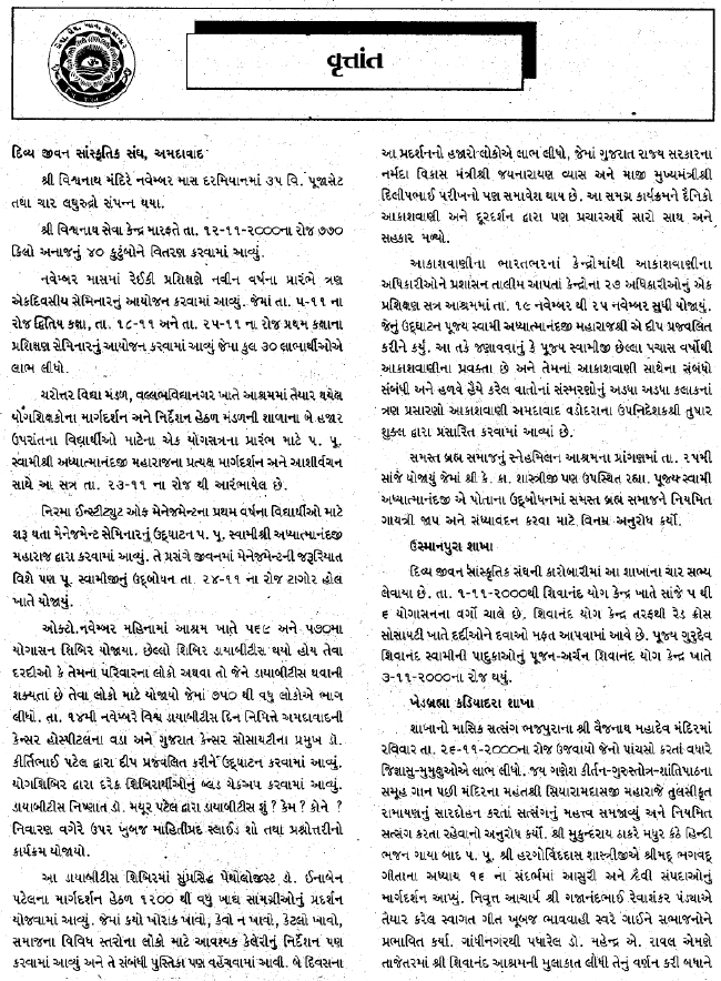 Please subscribe to Divyajivan Mailing List. We will update you with new uploads of spiritual literature on the web of Holy Master Sri Swami Sivanandaji Maharaj, saints of his lineage and other saints. We will also update you about the Sivananda Ashram, Ahmedabad website and facilitate communication with Sri Swami Adhyatmanandaji Maharaj.