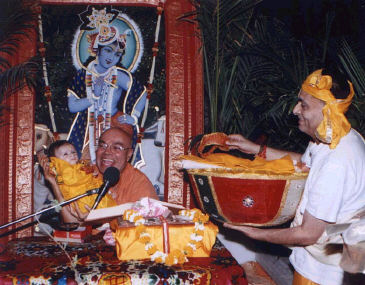 Procession with Holy Guru Paduka and Sri Krishna Idol. |