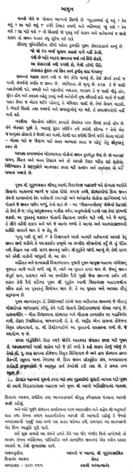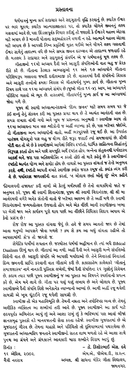 Forward by Sri Dr. Kishorbhai S. Dave (President, Sri Sadhana Mandir - Jamanagar)