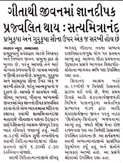At the Sivananda ashram, amateur artist from Palanpur, headed by Prof. Thacker presented a memorable play depicting life and teachings of Sri Shankara. Learned Sanskrit scholar, Prof. Lakshmeshji graced the occasion. Sri Swami Adhyatmanandaji Maharaj attended Vedant Samelan at Town Hall organized by Sri Samvit School of Vedanta Learning, Abu (Rajasthan).
