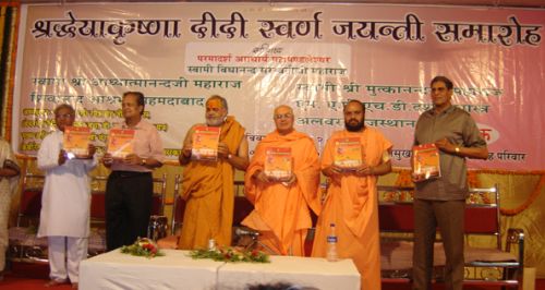 On April 20, 2007 Sri Swami Adhyatmanandaji was invited for book release function, organized by Samta Vichar Kendra, an offspring of Rashtriya Sevak Sangh. The book brings out the life and work of late Sri Baba Saheb Ambedkar, a veteran patriot of India, at the time of Independence movements of India. He fought for untouchables, Girl's education and against caste system. He was awarded with India's highest regards 'Bharat Ratna".