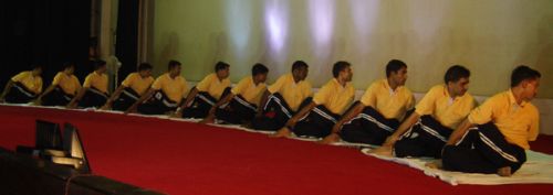 A memorable yoga demonstration and valedictory function was organized at concluding ceremony on April 18, 2007 at Sahyadri Bhawan, presided by Mrs. and Lieut. Gen. Mr. K. N. Mirji. Mementos and awards were presented to Rev. Swamiji and his assistant yoga team members. Certificates were awarded to all the participants of yoga team who put up a great Yoga Demonstration show.
