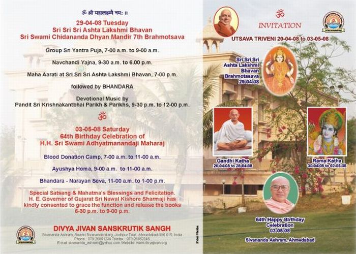 7th Sri Ashtalaxmi Bhavan & Sri Chidananda Dhyana Mandir Patotsav (April 29, 2008)