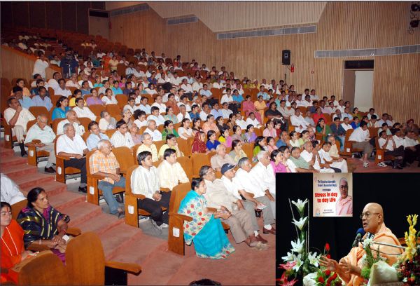 On Aug 16, 2007 Sri Swami Adhyatmanandaji Maharaj made a quick visit to Rajkot. He started at 5:00 am and return back by 4.00pm for Sri Sri Siva Puran Katha. He addressed a gathering at newly constructed “Sivananda Bhawan’ by Sri Divya Jivan Sangh, Rajkot. Sri Swamiji Maharaj was specially invited to preside over 86th year annual function of “PHULCHHAB’ a daily newspaper. The editors of "Phulchhab" are known for his good and balanced news policy – “Samyak- Achar” samachar. Sri Swamiji also made a lucky draw for its annual subscribers.