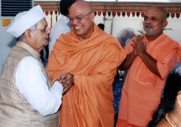 A delegation from the ashram visited the Governor’s house at Gandhinagar honoring an invitation of H. E. Governor of Gujarat, Sri Naval Kishor Sharmaji for Independence Day celebration and get together social. At this function, H. E Governor Sharmaji took an opportunity to praise the work of Pujya Swamiji. He is a frequent visitor of Sivananda Ashram and a observer of the services at the ashram. In his words, “Sri Swami Adhyatmanandaji is a Gem, highly scholarly literate personality and fountain of inspiration."