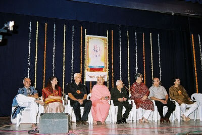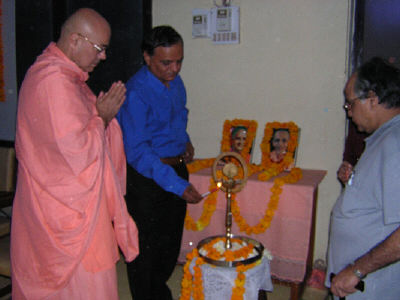 Visit to Mumbai - On Dec 22, 2004 Rev. Swamiji blessed the music and art school “Thumari” upon the humble and sincere request of the director Smt. Bijur Bhatt and Smt. Kavita Bhavsar.Swamiji was invited to fund raising program, organized by Sri. Vadnagar Nagar Mandal, Mumbai for the benefits of poor and needy children’s educational aid. Sri Ashit Desai and Smt. Hema Desai, a very famous music masters presented the devotional songs of Saint. Narasih Mehta. Also a famous writer and poet of Gujarati literature, Sri. Suresh Dalal attended the function.