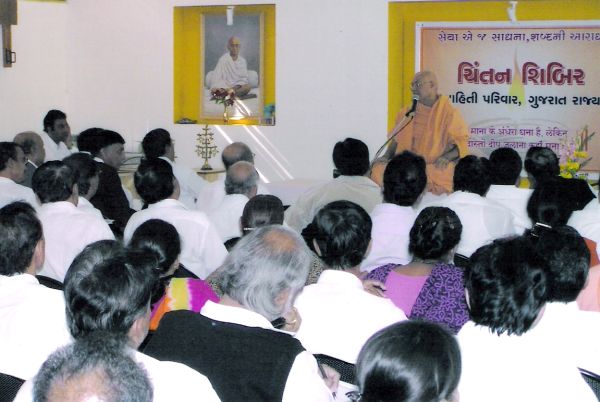 On Dec 23, 2006 was annual gathering of the group “Ahimsa Sangh “ promoting non-violence at Indian Medical Association, Ahmedabad, Swamiji attended the function and in his speech elaborated the true meaning of non –violence.. He further added that it should not be limited to hurting some one physically but it should be reflected in all our thoughts, words & deeds. Let us be positive thinkers, live and lead a life of honesty, truth and non violence. Shri Arunbhai Oza, president of "Ahimsa Sangh" organized the function.