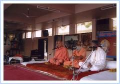 On Feb 2, 2006 late afternoon, Rev. Swamiji paid his homage to famous Sri Santaram Mandir of Nadiad on the occasion of celebration of 175th year of their establishment. Sri Moraribapu, Sri Rameshbhai Oza and other prominent speakers were there to join the celebration also. Swamiji spoke on 'Sadhana' based on the Chapter Thirteen of Bhagavad-Gita.