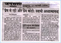 On Feb 3, 2006 at the invitation of Mr. Parekh, President of Bar Association of Supreme Court, Delhi, Sri Swami Adhyatmanandaji Maharaj graced the International Bar Association Club. Very prominent lawyers and judges attended the Satsang of Sri Swamiji, where he spoke on the subject of 'Law beyond the Law'. Honorable Justice Mr. V. N. Krishnana, who presided over the chair was very much impressed by Swamiji's speech and he said, "I had attended many functions and lectures in the past, but this one was simply unique . It was eye opener and challenging too."