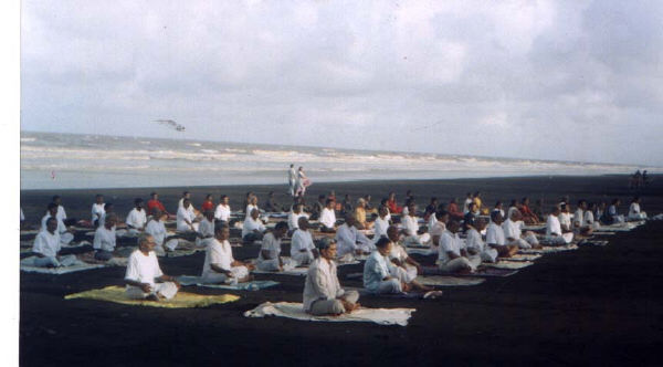 In the month of June we had our Spiritual retreat at Tithal, Seashore near Valsad in Gujarat. From early dawn to late night we had altogether five sessions of Yogasan, Pranayam, Meditation, Gita Chanting, Path of Sri Vishnu Sahashranam, discourse upon Atma Shatakam and Charpat Panjarika Stotra by Sri Adi Shankeracharya. Evening were enjoyed and filled with games to relax the self at beautiful sea shore of Tithal. Famous Bandhu Triputi Jain brothers Sri Jinchandraji Maharaj graced the Shibir for opening and for concluding session. 70 aspirants from Valsad, Surat, Bharuch, Baroda, Ahmedabad, Khedbrahma joined the Shibir and when with great satisfaction of gained feelings, each one of them gave in writing that such camps should be repeated soon. ( now and then). Retreat commenced on Sunday June 1st and concluded on Friday 6th June 2003.