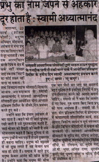 Media coverage of Yoga Camp at Jalandhar