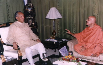 Pujya Swamiji with Governor of Punjab Sri.Guptaji at Rajbhavan.