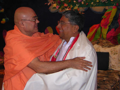 Pujya Swamiji Blessing Sri Jasbhai ( "Sahebji") on his Shashtipurti celebration