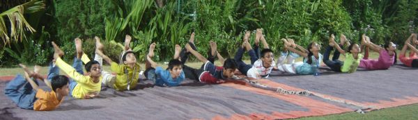 Tratak (candle light) meditation, pranayama, flexibility exercises, principal yoga postures, additional simple postures and relaxation techniques were taught everyday from 6.00am to 7.00am during the ten days of the Yoga Camp.