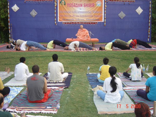 The 698th Yogasana, Pranayama, and Meditation Camp (May 12, 2008 - May 21, 2008) 927 yoga enthusiasts attended 698 th Yoga camp of Sri Swami Adhyatmanandaji from May 12, 2008 to May 21, 2008 at Sivananda Ashram, Ahmedabad. It was inaugurated by Dr. Bharat Trivedi, Dean of V. S. Medical College, Ahmedabad and Sri Surendrabhai Patel, MP. Sri Shakti Singh Gohel, opposition party leader of Gujarat Vidhan Sabha also attended the Yoga session.