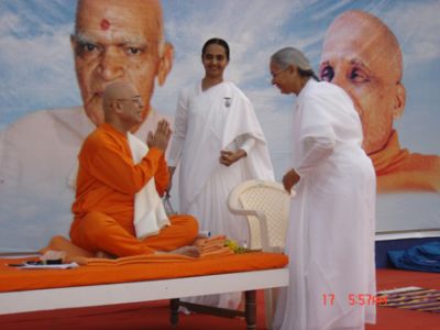 Chandrika Mataji of Brahmakumari, (Ahmedabad) gracing Pujya Swamiji's Yogasana