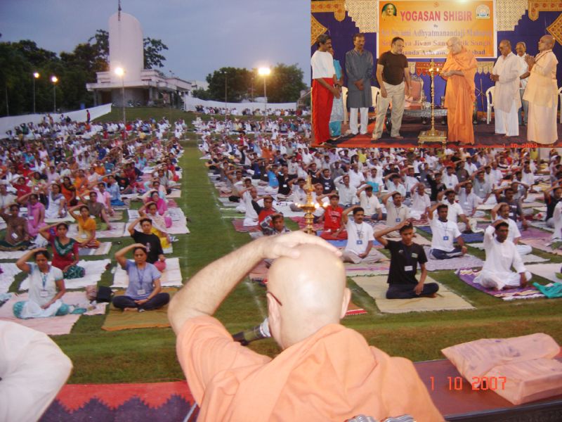 As Always, Revered Swami Adhyatmanandaji's itinerary was completely filled with spiritual programs, satsangs  & tours in the month October 2007. He believes in service to known and unknown. "Manav Seva is Madhava Seva"- Swamiji preaches by putting it into practice in his own life. He cares least about his physical comforts & need. He is approachable to one and all. People from all walks of life get inspired in his holy presence. He is a true Karma Yogi.