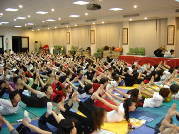 Two hundred twenty-five-yoga enthusiastic attended three days yoga workshop at Buddha Monastery (Fo Guang Yuan) at Kaioshung. It was organized by Mr. Wu and Mrs. Thong. H. H. Lama Su Cheng Li Mung Greeted Rev. Swamiji and gave him a floral welcome.