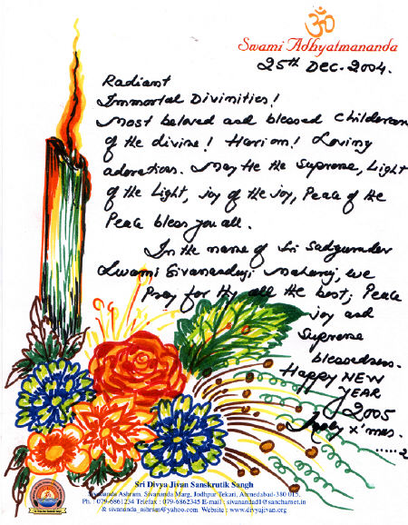 Please subscribe to Divyajivan Mailing List. We will update you with new uploads of spiritual literature on the web of Holy Master Sri Swami Sivanandaji Maharaj, saints of his lineage and other saints. We will also update you about the Sivananda Ashram, Ahmedabad website and facilitate communication with Sri Swami Adhyatmanandaji Maharaj. |
