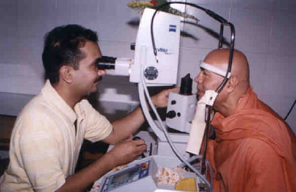 On auspicious morning of September 21, Saturday a YAG LASER machine worth of Rs. 12 lakhs was dedicated for the service of needy and poor tribal of the Valsad District. Rev. Swamiji lit the lamp, dedicated the YAG LASER machine and was honored by Sri Bharat Desai Managing Trustee, and a leading chartered Accountant of Gujarat. In the introductory and thanks giving address, Shri Bharat Desai said that until now for the laser treatment they were sending patients to Surat Govt. Hospital but it is due to hard work of Sri Swami Adhyatmanandaji Maharaj and sincere efforts of the Divine Life Society Valsad, this wonderful service is made available at home now. This money of Rs. 12 lakhs (Rs. 1.2 million) was raised last year during Shrimad Bhagwat Katha by Rev. Sri Swami Adhyatmanandaji Maharaj. Rev. Swamiji spoke on the occasion that let the service be an attitude of our each individual being to make a befitting aptitude of the life.