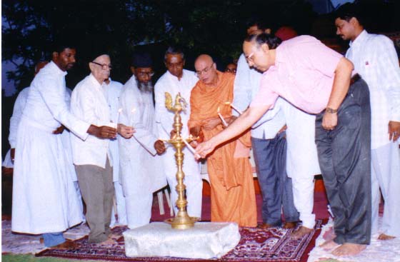 the lamp; and prayed for peace in Ahmedabad in particular and for Gujarat in