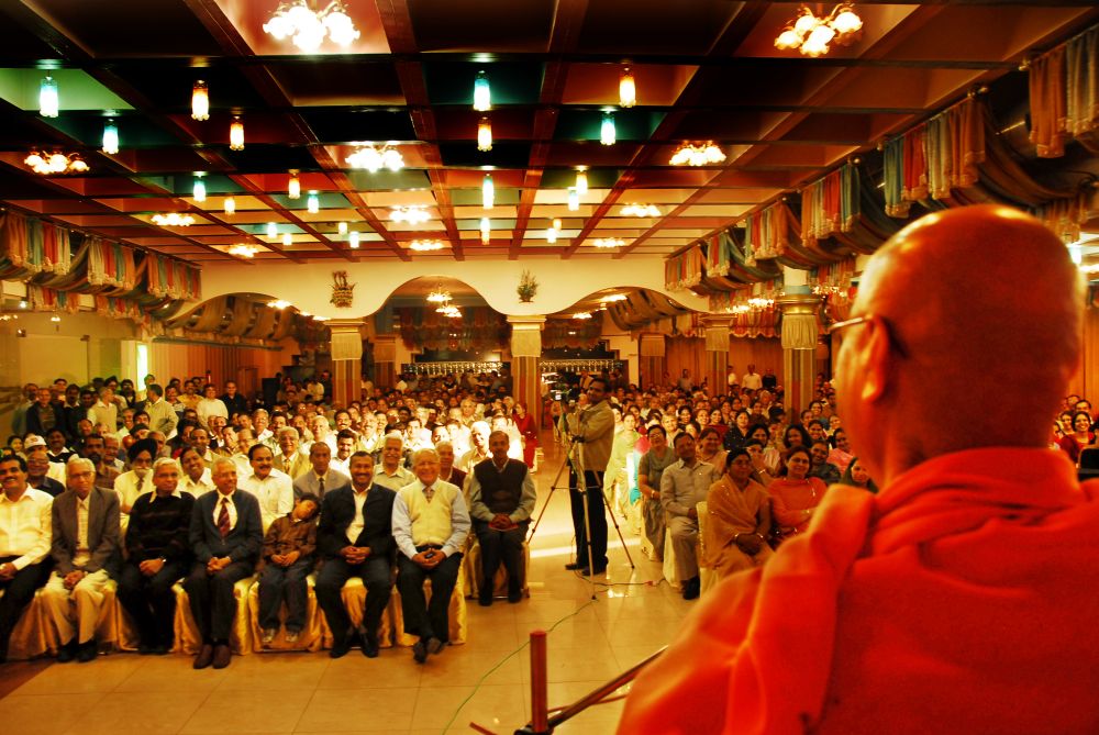 Karnal’s Karma Yoga Association organized evening public discourse at a grand scale in a ‘Golden Moment’ hotel. A central hall of the hotel was packed to its full capacity with devotees. “Our moral duty towards the Nation” was the topic and Swamiji apoke on the subject for full two hours H.H. Sri Swami Amrik Devji, Dr. Swami Radha Krishnanadaji and other saints graced the occasion. Satsang was followed by question & answers session. The satsang concluded with a silent meditation. Dinner was served to all after the satsang.