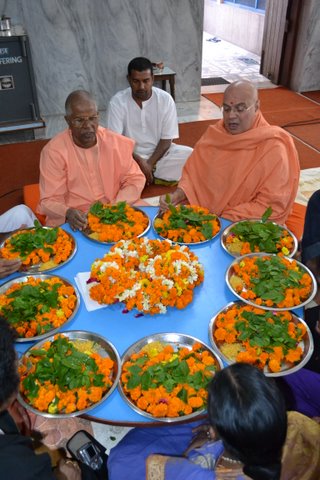 Shivaratri Utsav ( March 2, 2011)   Chants of "Om Namah Shivaya" charged the air of Sivananda Ashram with Divine vibrations as they celebrated Sacred Maha Shivratri on March 2nd, 2011. Holy Shri Vishwanath Temple was agog with worship of Lord Shiva. It started with Shodashopachar Pooja at 4.00 am on March 2nd and continued until the next day 4.00 am on March 3rd. Continuous flow of devotees came to the Lord Vishvanath Temple to pray and seek the blessings of Lord Shiva – who is considered Ashutosh, who gets pleased very easily. The Siva Lingam was worshipped by washing it with milk, curd, honey and rose water as the chants of Vedic Hymns, Namakam, Chamakam, Rudram and "Om Namah Shivaya" in praise of Shiva continued. Shiva Lingam was adorned with special Shringar and Sri Swami Adhyatmanandaji Maharaj performed Bhasma Arati. Shiva temple was full of Bel (Bilva) leaves, which were offered to the Lingam. Bel leaves are believed to be very sacred and the best offering to Lord. Also there is a strong belief that sincere worship of Lord Shiva on the auspicious day of Shivaratri, absolves person of sins and liberates him from the cycle of birth and death. Bhakti Sangeet (Devotional Songs) in praise of the Lord from 5.00 pm to 5.00 am throughout the night  by outstanding singers Sri Shyam Sankirtan group, Smt. Dr. Monica Shah of Aradhana School of Indian Classical Music, Pandit Sri Niraj Parikh, Sri Vikas Chandra Parikh, Sri Maatang Parikh, Miss. Himali Vyas and Sri Devesh Dvivedi brought a special fervor to already charged atmosphere. On 3rd mid-day a grand Bhandara (Mahaprasad) was served to hundreds of devotees at the ashram.