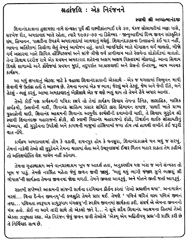 Please subscribe to Divyajivan Mailing List. We will update you with new uploads of spiritual literature on the web of Holy Master Sri Swami Sivanandaji Maharaj, saints of his lineage and other saints. We will also update you about the Sivananda Ashram, Ahmedabad website and facilitate communication with Sri Swami Adhyatmanandaji Maharaj. |