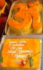 Finally arrived the day, all were waiting for, Beloved Swamiji’s birthday May 3, 2005 . The day commenced with Sahanai vadan by famous Gaiekwad brothers from Vadodra. It created very serene atmosphere, just right for morning meditation. Then followed candle light meditation which filled already charged atmosphere with divine vibrations. Ceremonial bath was given to H. H. Sri. Swami Adhyatmanandaji Maharaj with flowers and garland. Swamiji did Padukapuja of Gurumaharaj, later on devotees worshiped his feet too. Felicitation function followed by Sadhu Bhojan and offerings to sixty one Sadhu Mahatma’s.