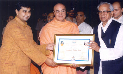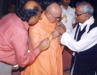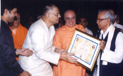 2. H. E. Governor Mishraji, being a president of All Gujarat Red Cross Society, presented a special honor to Rev. Sri Swami Adhyatmanandaji Maharaj for his generous services to the mankind by donating blood more than 100 times. He is being declared Centurion.