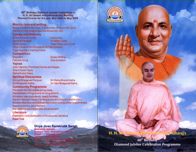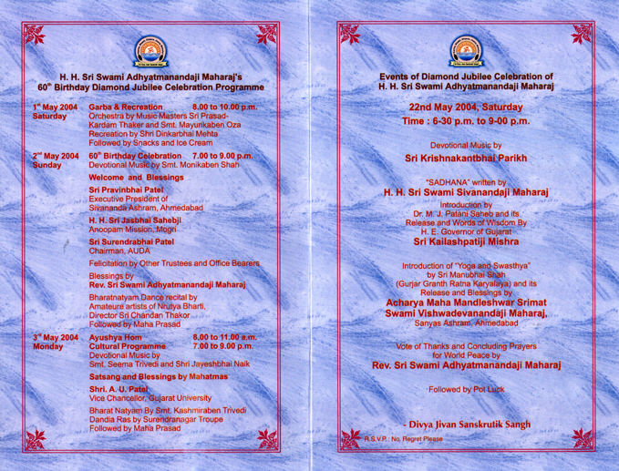 Shashti Purti Mahotasav (60th Birthday Celebration) of Pujya Swami Adhyatmanandaji Maharaj (May 1- May 3, 2004 )