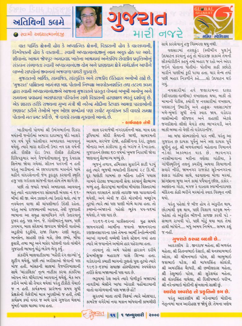 Vibrant Gujarat - "Gujarat Mari Najare ( in Gujarati)"- article by Swami Adhyatmananda