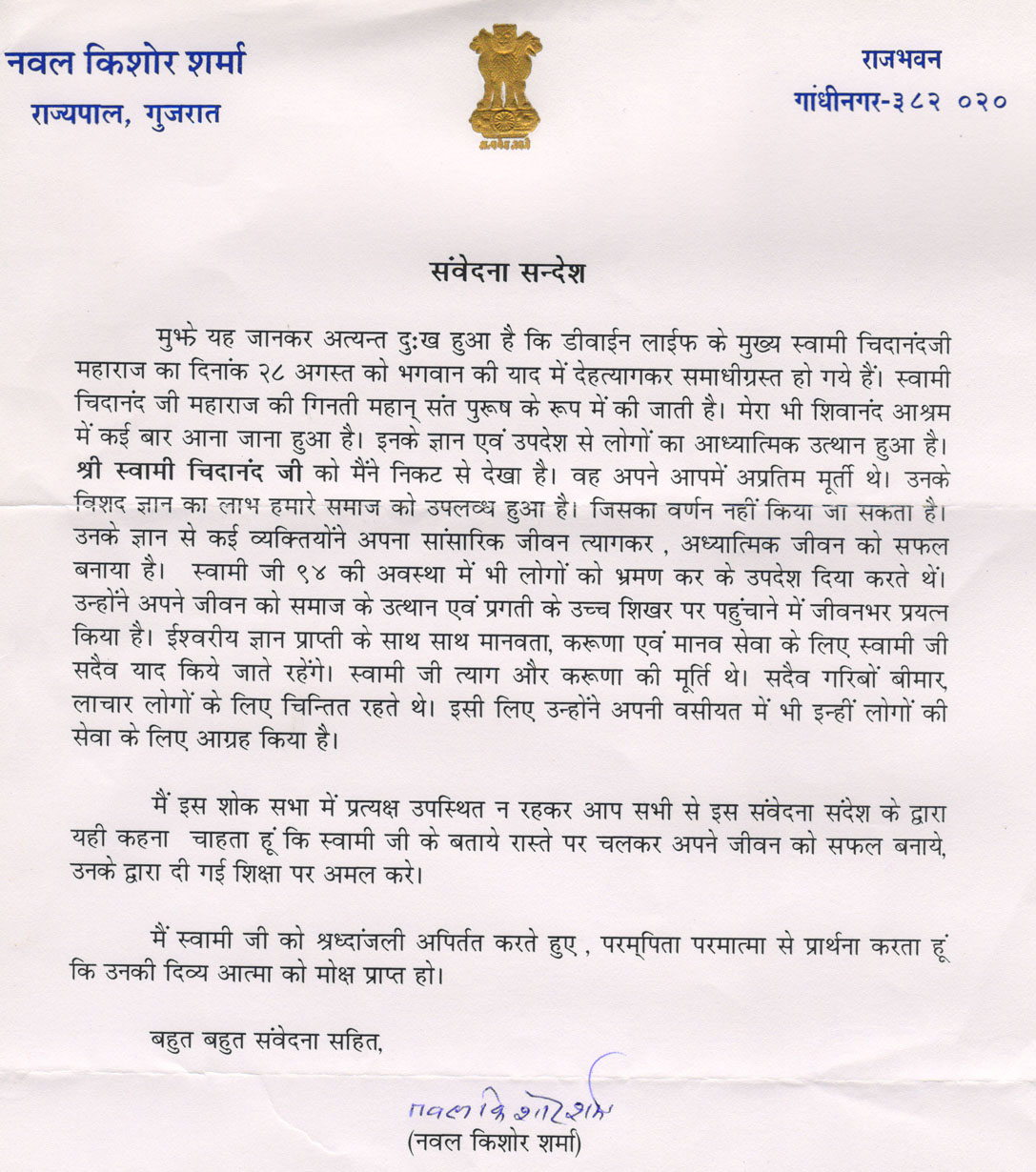 Honorable Shri Naval Kishor Sharmaji His Excellency, the Governor of Gujarat sent his message expressing deep grief.