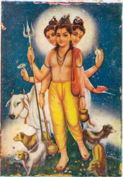 The child Dattatreya soon attained manhood. As he had the rays of the Trimurtis and as he was a great man of the highest wisdom, all the Rishis and ascetics worshipped him. He was gentle, peaceful and amiable. He was an Avadhuta—an ascetic who always remains naked. He preached the Truth of Vedanta. Dattatreya taught his Avadhuta Gita to Lord Subramanya. This is a wonderful book which contains the truths and secrets of Vedanta and the experiences of Self-realisation.